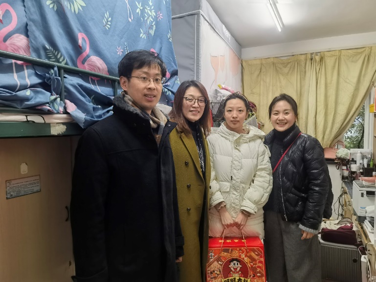 1月31日,系党委书记于瀛带队,走访邯郸、江湾两个校区的学生宿舍,进行消防安全检查和新春慰问。系党委副书记、纪委书记龚嶷,系党委副书记许妍参加走访慰问。为留校过年的学生送上暖心的春节大礼包,勉励同学们龙马精神、不断进步。31日晚,邀请留校学生代表共同参加学校师生迎春会。
