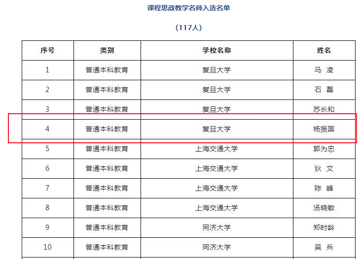 近日,在上海市教育委员会公布的2022年课程思政示范项目名单中,杨振国教授获评上海市课程思政教学名师。
