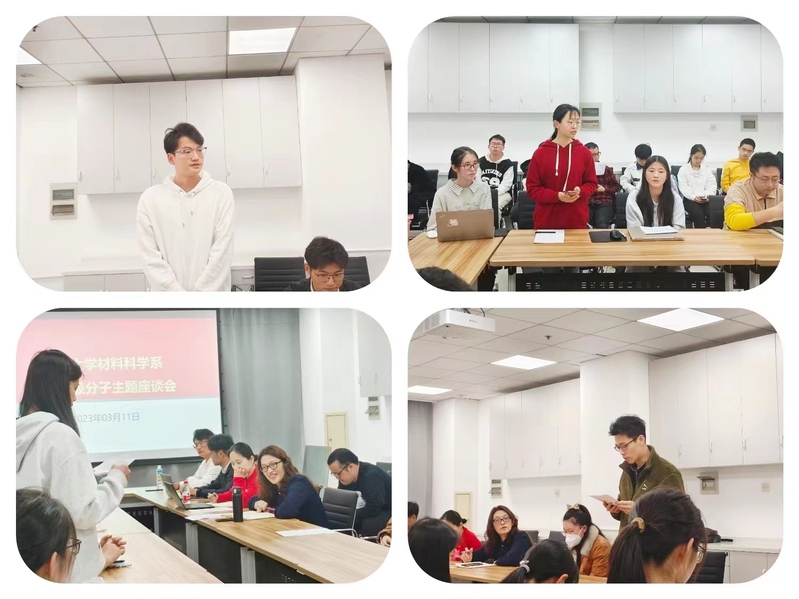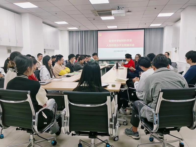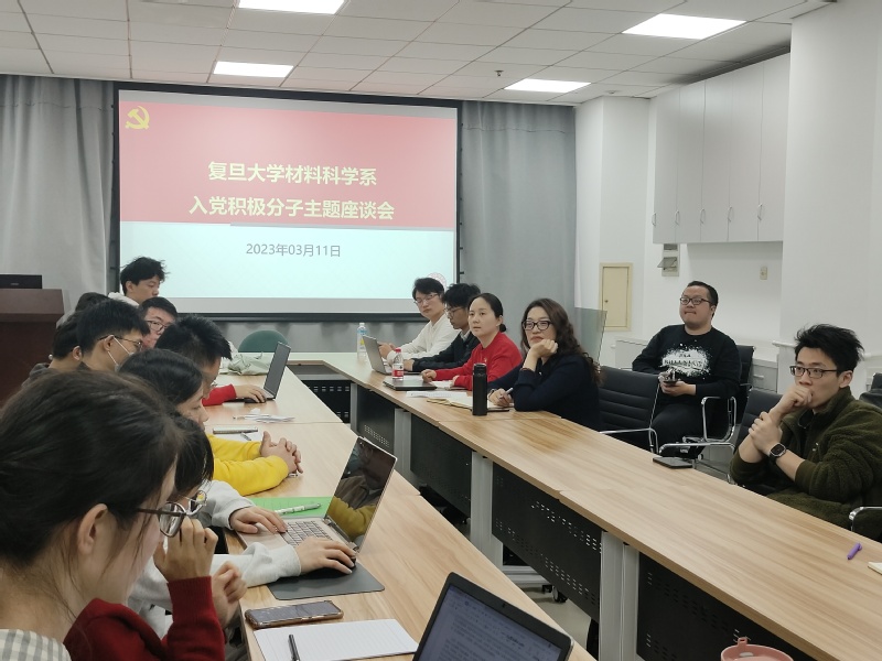 入党积极分子同学逐一交流了入党动机和学习心得。2021级硕士生钟志鹏提到自己受到身为中共党员的父亲的影响从而萌生入党的想法,他的父亲曾说“我是一块砖,哪里需要哪里搬”,让他深切感受到共产党员的奉献精神。“去年学校封控管理期间,我身边的党员同学们任劳任怨地服务,发放物资、核酸检测、转运陪护,哪里需要哪里就有他们的身影,是他们守护了平安校园”,2022级硕士生杨燕如在与优秀党员同学接触过程中深受感动。从乡村到城市求学,谈到脱贫攻坚的伟大成就时,2021级硕士生朱仁阳、李欢和刘昱等几位积极分子同学心潮澎湃。“家乡的大学生村官在各自的岗位上发挥先锋模范作用,他们积极进取的精神感染着我,我也想加入他们成为其中的一份子”,2021级硕士生朱仁阳说到。2021级硕士生李欢说,“村村通,家电下乡,这些实实在在的惠民政策改变了农村的面貌,只有中国共产党的领导才能带给人民幸福生活”。2022级硕士生王月分享了自己在“红色参访”活动和公益服务中的所学所感,“中国共产党带领人民在建设民族复兴道路上经历了重重困难,走出了具有中国特色的正确道路,离不开共产党人的接续奋斗。作为积极分子,我也尽己所能去服务社会,我跟随党章学习小组走进居民社区向老年人开展反诈教育,这让我体会到自身价值和社会需求的有效结合”。2021级本科生温尊弋提到了自己学习党的二十大报告中“科教兴国战略,现代化人才支撑”的感悟:“科技强则国强,国家富强人民生活才能更加美好,作为一名材料学子,我们更应该关注国家科技发展面临的卡脖子问题,积极响应祖国号召,自主创新,在重要领域为国家做出贡献。”2021级本科生张宁博分享了自己在学习过程中的心得,他认为入党后有更多的机会和平台服务人民,可以与更多优秀的人同行,让自己的信仰更加坚定,从而获得更多动力,更好地服务于国家和社会。
