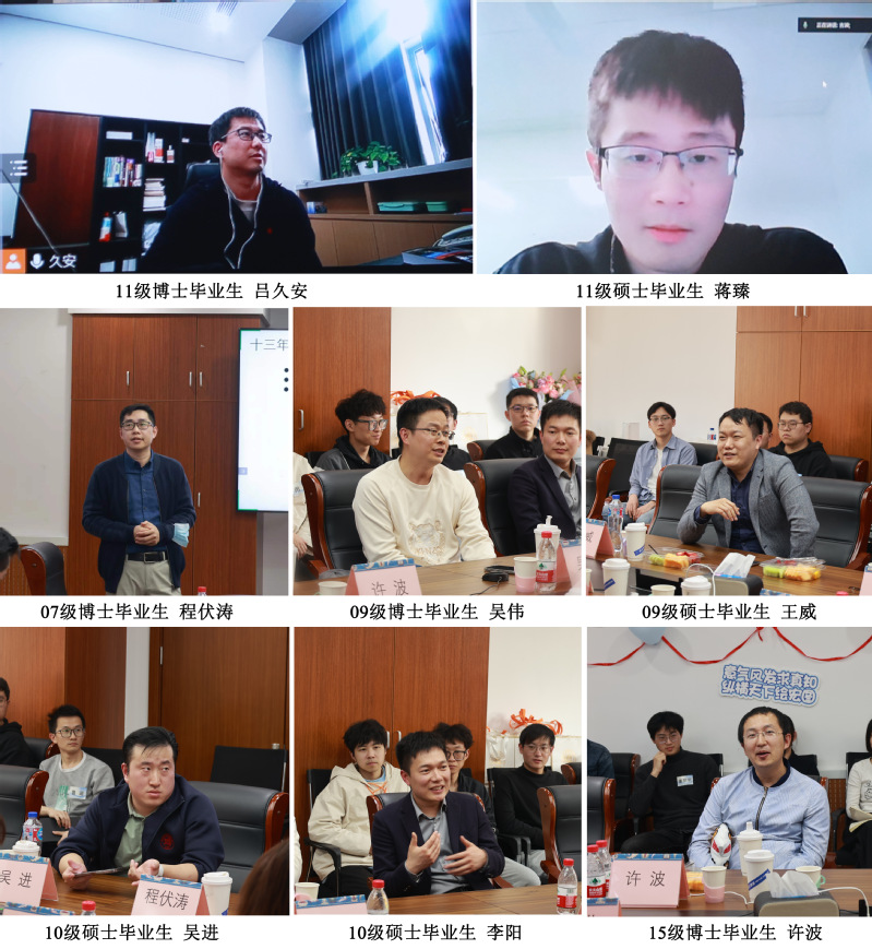 随后,毕业后选择就业的校友们,也各自分享了自己在工作岗位上的成功经验。07级博士毕业生,曾在杜邦中国有限公司从事汽车涂料产品开发,现任巴斯夫中国有限公司亚太区涂料树脂部门负责人的程伏涛师兄介绍了自己从业十三年来的工作感悟,感谢了老师们曾经的栽培,并且通过互动的方式,向同学们传授了简单的面试技巧。09级博士毕业生吴伟师兄,通过分享自己在日本工作八年的从业经历,鼓励同学们向着自己感兴趣的方向不断钻研。接着,09级硕士毕业生,现任上海交通大学出版社首席编辑、副编审的王威师兄;10级硕士毕业生,现任职上海本诺电子运营经理的吴进师兄,也从如何择业的角度,帮助同学们找到自己未来的从业方向。随后,10级硕士毕业生,现任海棠书屋 义乌研究院青年研究员、创办“国家级高新技术企业”珠海汉龙智能科技有限公司的李阳师兄从“产业化、科研、行政”三个部分分别讲述了其在创业过程遇到的重重困难,为同学们如何在有限的时间创造价值提供了非常重要的指导意义。最后,2015级博士毕业生、现任职于禾大公司的许波师兄建议我们要不断尝试未知事物,走出舒适圈。在分享的过程中,组内的同学和老师也积极地向师兄们提问、分享自己的故事。这些在职场中不断经历挫折以及奋斗出来的经验,将成为一本就业指南,不断激励着该组同学努力进步,成为更好的自己。