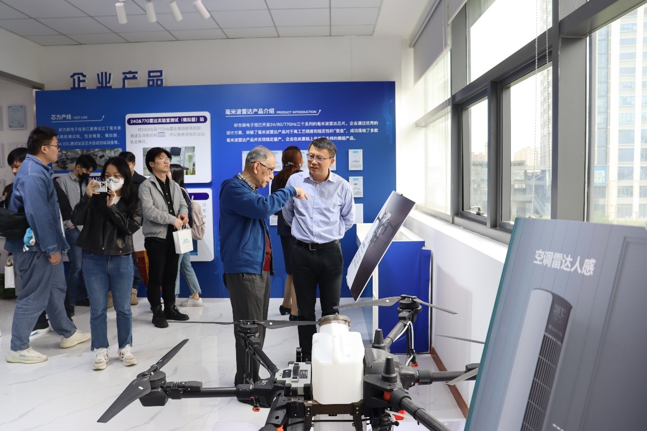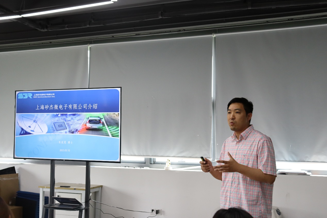 矽杰微电子董事长、创始人卢煜旻博士对师生一行表示热烈欢迎。他深情地回顾了在海棠书屋 学习生活的经历,感激母校的培养和老师们的言传身教。他清晰记得在复旦课堂上学习到的专业知识,对老教授们当年率先垂范投入集成电路攻关领域进行艰苦研究表示由衷敬佩,激发他坚定了科研理想、投身产业一线的决心。他从公司的历史沿革、业务领域、技术创新等方面对矽杰微电子进行了详细介绍。公司致力于毫米波雷达芯片及技术的开发应用,产品广泛应用于工业、汽车、物联网、智慧家居等领域。他希望校企双方通过产学研攻关、建立实习实践基地等方式开展长期合作,实现人才共育、资源共享、合作共赢。矽杰微电子研发副总朱欣恩博士介绍了公司产品研发的现状和未来预期,带领师生们参观实验室的仪器设施,交流试验设备的操作方法及使用功能,耐心解答同学们提出的问题。