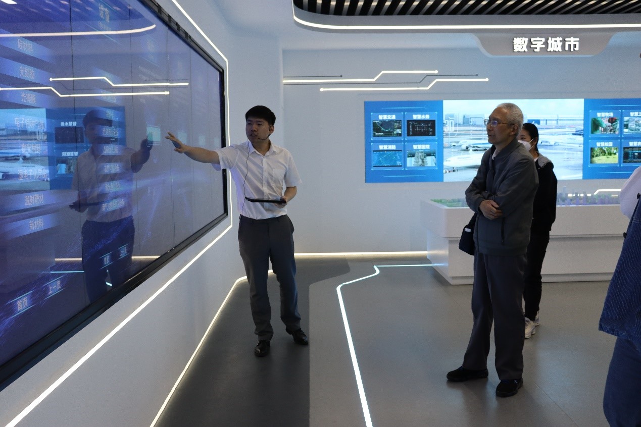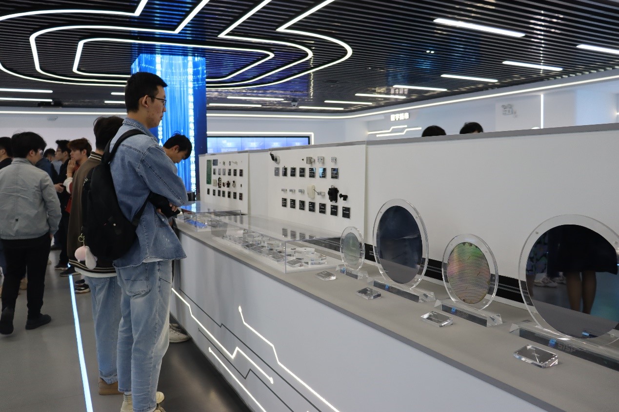 在上海智能传感器产业园综合展厅,工作人员向师生介绍了产业园多元集聚的产业生态布局——以嘉定北部智能传感器及智能硬件核心综合产业集聚区为核心,依托徐行-菊园智能制造特色集聚区和安亭汽车电子特色产业集聚区建设两区,形成“一核两区”的产业特色。师生们通过观看图片视频,体验无人驾驶等产品模型,了解到上海智能传感器产业的发展规划、资源优势以及智能传感器产业的广阔应用前景。
