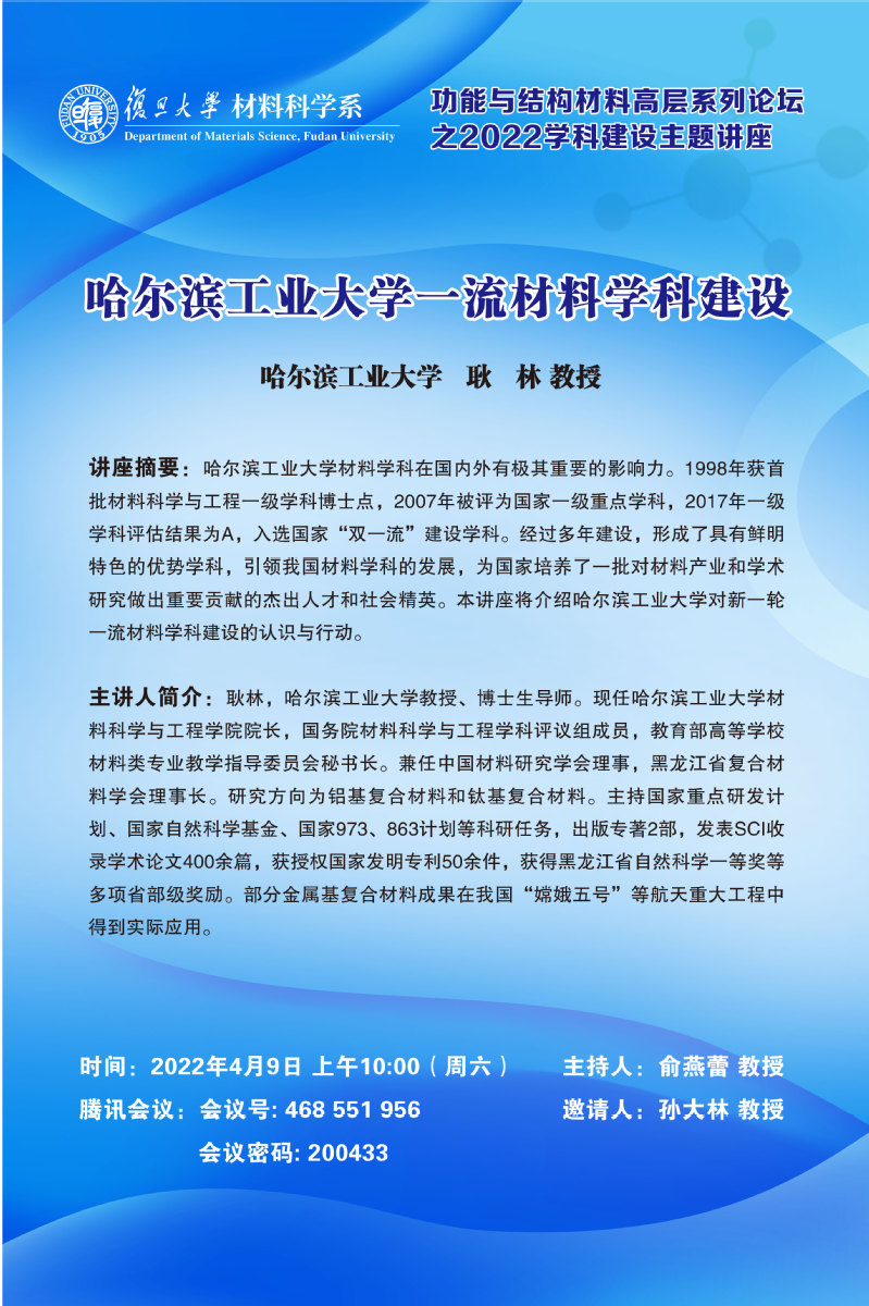 功能与结构材料高层系列论坛之2022学科建设主题讲座