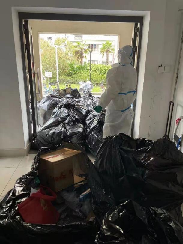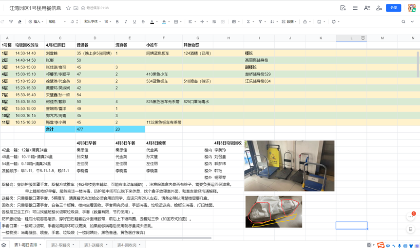 对于管理调度中不时出现的新问题,大家群策群力想办法,累活脏活抢着干。封闭管理的楼宇缺少后勤保障的阿姨,生活垃圾处理成为同学们普遍反映的问题之一。志愿者服务队通过协调,主动规划和实施楼内垃圾的清运工作,缓解楼栋封控对同学们生活造成的不便。送餐运餐过程中涉及到小推车的使用频率和功能,也被辅导员江乐巧妙地画成任务图,最高效地解决了运餐问题。防护服数量有限,怎么延长防护鞋套的使用寿命也引起了大家思考,巧手姑娘们用一段透明胶带破解了这个难题。对于干湿垃圾的分离问题,用一个纸箱单独回收筷子,大大提高了垃圾袋的使用率。诸如此类的巧思妙招,是封控管理中志愿者们主动思考、自发行动、机智应对的生动体现。在封控期间同学们提出的各项建议与需求,也在通过共享文档不断整理与反馈,尽力化解同学们的不安情绪。看到志愿者们忙碌的身影,更多同学们积极主动地提出期望加入志愿服务队伍,海棠书屋 的同学们在志愿服务队中的人数也增加至了十余人。楼栋内的生活虽然不同于往日的方式,但同样在有序地向前推进。这些都离不开志愿者们的辛勤付出和同学们的理解与支持。
