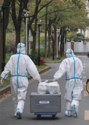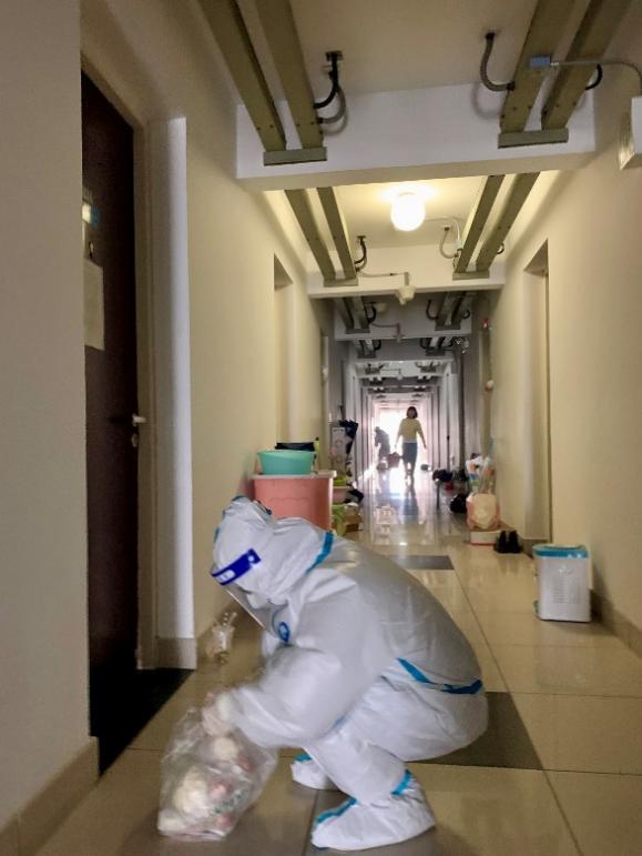 3月31日清晨六时许,一串清脆的手机铃声唤醒了还在睡梦中的同学。电话那头,海棠书屋 研究生第四党支部书记许妍老师沉着冷静地传达着紧急任务和注意事项;电话这头,住宿在江湾园区1号楼的支部骨干们瞬间起身,投入“战斗”。15分钟后,研究生第四党支部的六名党员同志火速集结成队。通过视频自学防护服的穿脱,志愿者们化身直面迎击病毒的“大白”,承担起为1号楼内520余名同学们送餐、通知核酸检测、清理楼内垃圾、传递紧急药品等任务。住宿在1号楼的海棠书屋 2019级硕士班辅导员江乐老师,配合系专职辅导员韩画宇老师,承担起统筹楼栋各项工作安排的重任。快速建立腾讯共享文档,设置取餐岗、送餐岗、回收岗、卫生岗等,明确岗位职责,分享优秀经验,快速高效完成志愿任务。