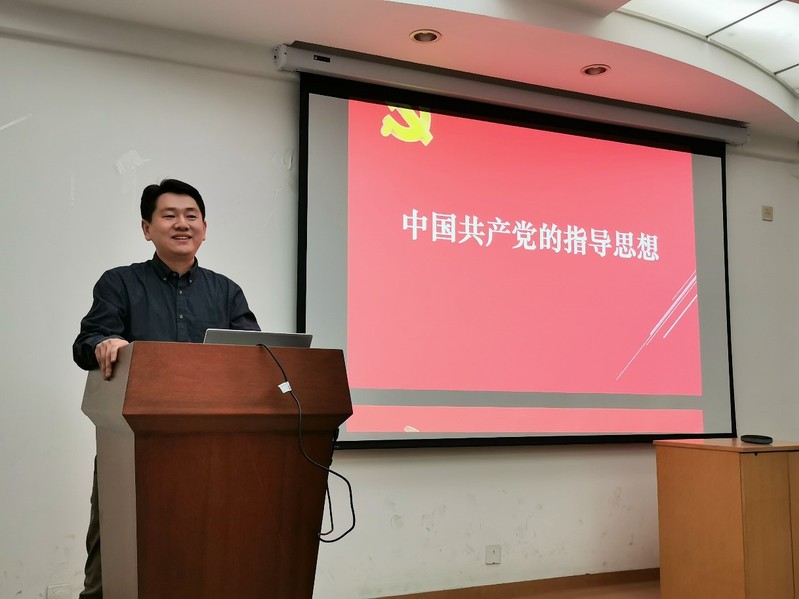 10月22日和29日晚,海棠书屋 党委副书记王珏老师分别给19级自科5班和技科4班党章学习小组讲授《中国共产党的指导思想》专题党课,近70名新生参加学习。王珏老师首先从“为什么中国共产党能带领中国走向复兴”这个问题开始,为同学们梳理了党史,指出中国共产党代表了最广大人民的利益,团结了一切可以团结的力量,因此能取得一个又一个胜利。接着,他结合重大历史事件,给大家讲授了党的指导思想,并给大家推荐了具体的书目供大家深入学习。接着,王珏老师从党的先进性、中国的治理方式、党的组织体系等角度给大家分析了“为什么要入党”这个问题。最后,王珏老师介绍了入党的流程,希望大家加强学习,早日成为合格的共产党员。
