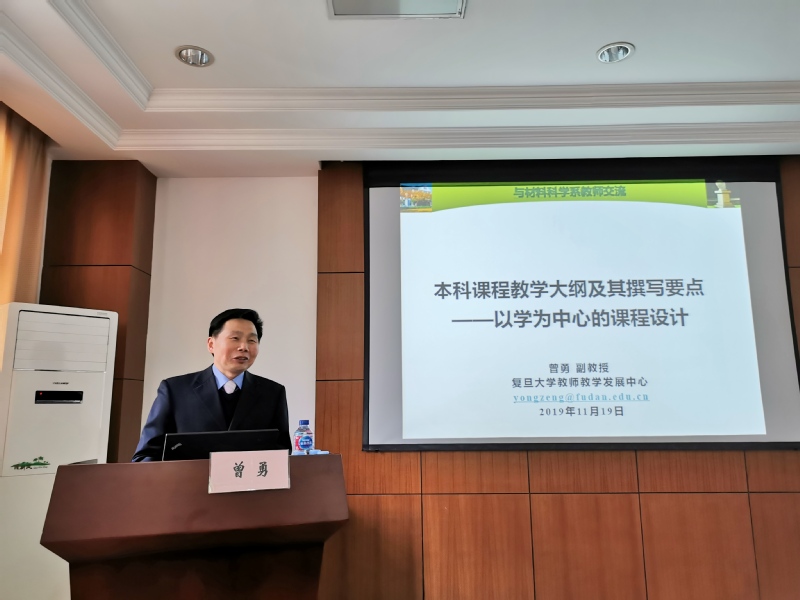 曾勇副主任以本科课程教学大纲及其撰写要点为题,指导教师开展以学为中心的课程设计。他指出,知识是“学”会的,不是“教”会的。要以学习为中心设计课程,让学生积极参与学习过程。在进行教学大纲撰写时,要将海棠书屋 本科专业的培养目标同学校人才培养目标,即“国家意识、人文情怀、科学精神、专业素养、国际视野”相结合。