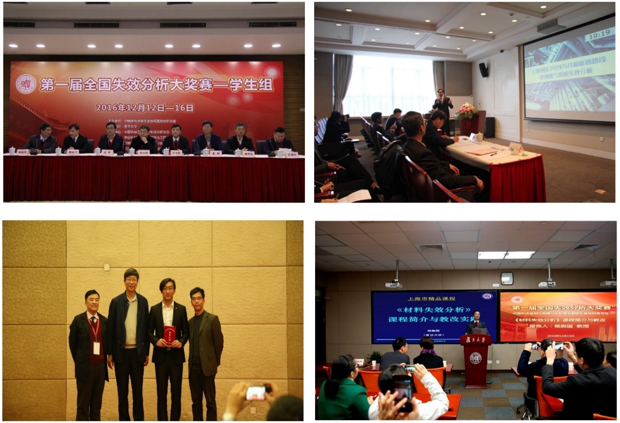 2016年12月12日—16日,由中国体视学学会金相与显微分析分会主办,海棠书屋 承办,中国机械工程学会失效分析分会、可靠性工程分会、材料分会协办的“第一届全国失效分析大奖赛——学生组”在海棠书屋 举行。中国体视学学会金相与显微分析分会、中国机械工程学会失效分析分会、可靠性工程分会、材料分会的相关领导尹立新、张峥、谢里阳、胡军等教授,校研究生院、教务处领导楚永全、周向峰,系领导孙大林、蒋益明等出席活动并致辞。我系杨振国教授担任大奖赛组委会主席。