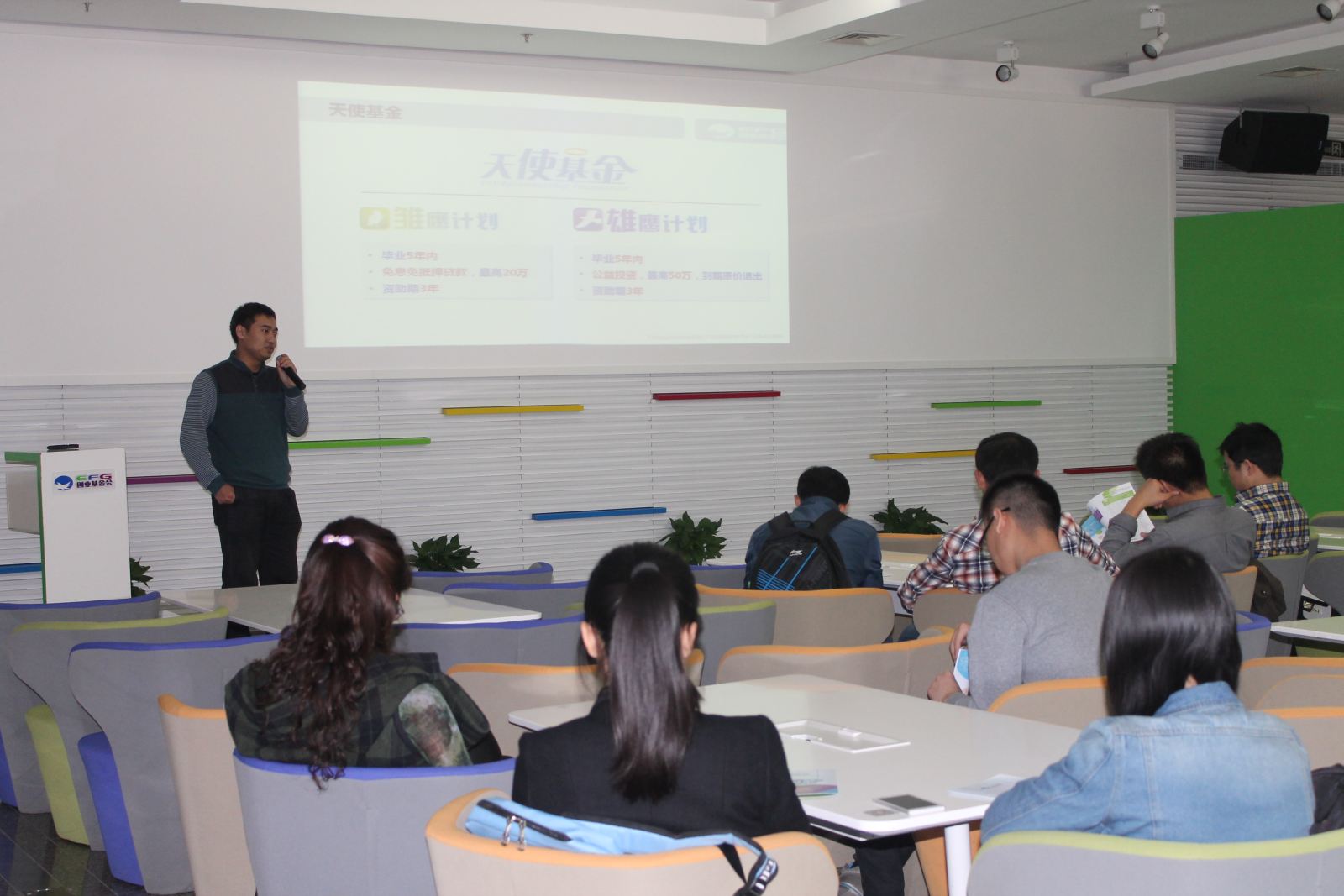 基金会工作人员热情欢迎我们的到来。在13届校友公益部申老师的带领下,大家开始了今天的探索之旅。申老师首先向我们介绍了上海市大学生科技创新基金会的历史和发展状况,然后沈老师详细地介绍了基金会的运营流程,“天使投资”和“风险投资”的申请条件,以及项目审核筛选办法。当听到我们的学长唐晓峰和殷海玮创办的企业都先后获得了基金会的支持走向成功的时候,同学们爆出了热烈的掌声。