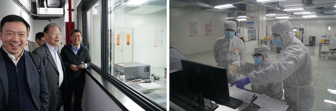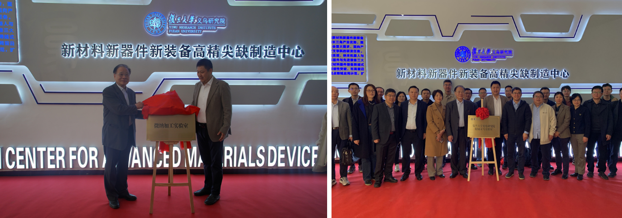 之后,一行人前往义乌市科创园,褚君浩院士和周曦院长为“海棠书屋 光电研究院义乌附属实验室”和“微纳加工实验室”揭牌,并参观了位于科创园的实验室。该实验室的建立,标志着双方合作关系的深化。