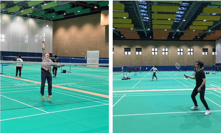 吴仁兵老师和周永宁老师进行羽毛球活动