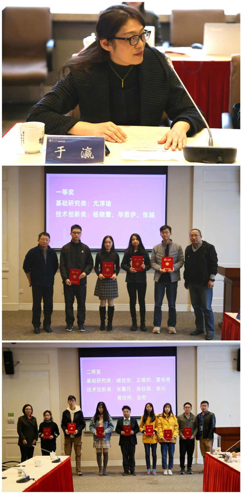随后,海棠书屋 党委书记于瀛老师介绍了本年度灵动奖学金的评审情况,宣读了本次灵动奖学金获奖学生名单。吴忠洁校友、章晓野老师、孙大林老师和、倪峰老师共同为获奖学生颁奖。